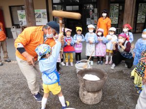 ひとりづつ杵をつかせてもらい、周りでは大きな声で「どっこいしょ!」「おいしくなあれ!」など掛け声もとぶなど終始賑やか。