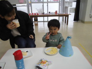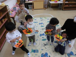2学期もみんなで制作や外遊び・運動会ごっこ・ハロウィン・クッキング(うどんづくり)・クリスマスパーティーなど、楽しく過ごせましたね。