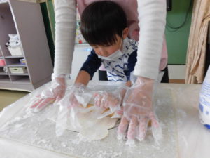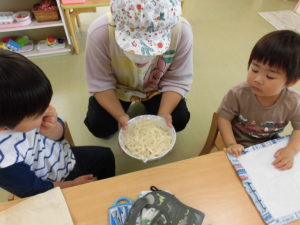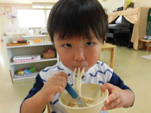 HOME > 今日のひとこま > 今日のひとこま 2022 うどん屋さん開店! 投稿日:2022年5月17日 今日はナーサリーのうさぎ組さんでうどん屋さんが開店。 朝からなんと!手打ちうどん作り。自分たちで生地をふみふみ。一時間ほどねかせた後、のばして。 給食の先生にゆでてもらいました! 何ともしっかりしたこしがあり、食べ応え満点(*^▽^*)おいしそうに食べていましたよ! Twitter Facebook Google+ Pocket B!はてブ LINE -今日のひとこま